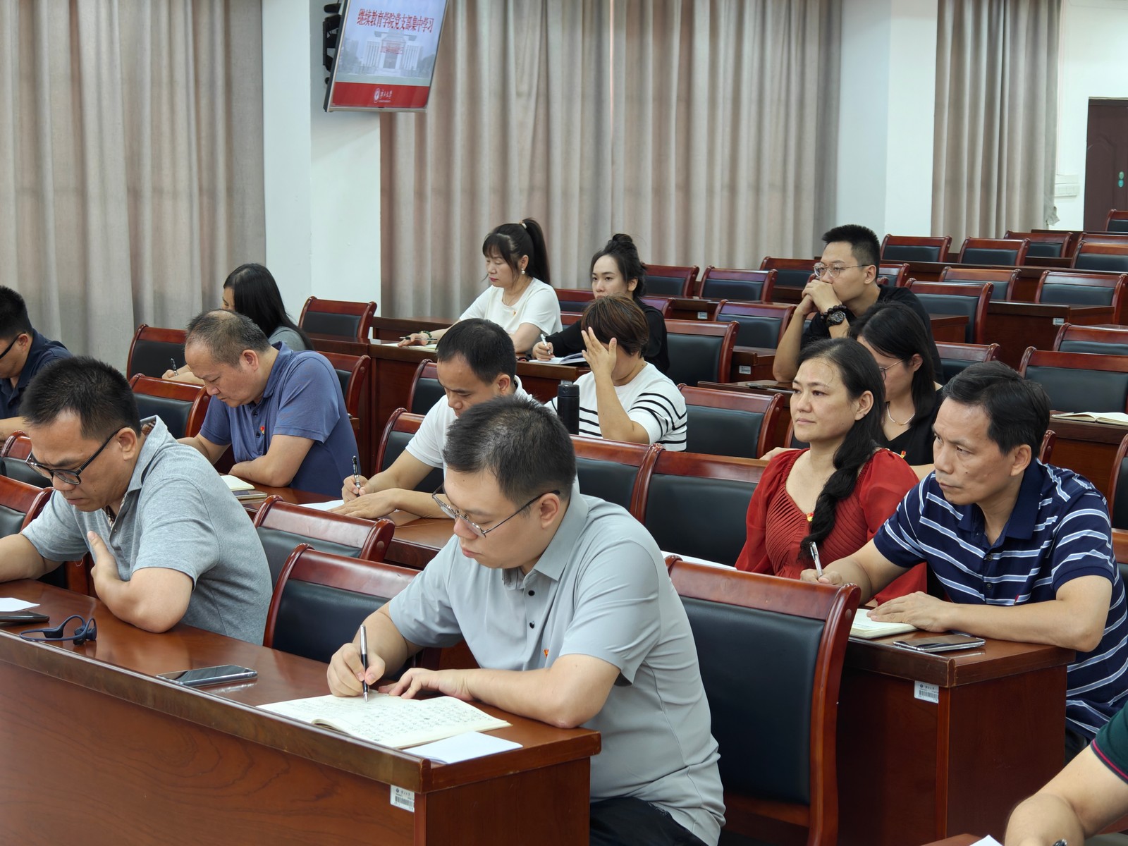 会上,闭富春带领全体党员学习习近平总书记在全国教育大会上的重要讲话精神,观看时代楷模杨士莪院士的先进事迹视频。与会党员同志围绕杨士莪院士先进事迹,结合个人学习工作实践,分享专题学习心得体会。