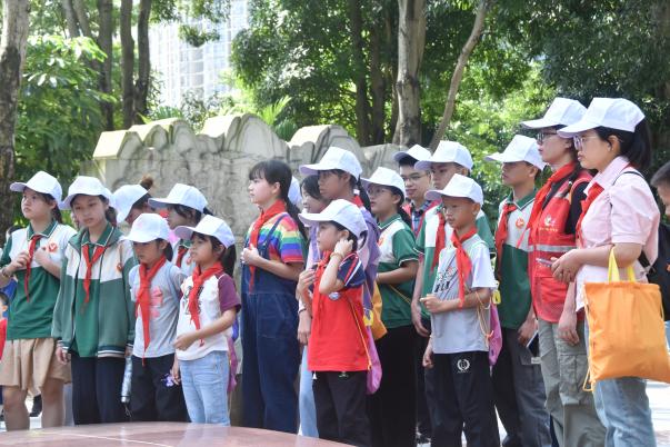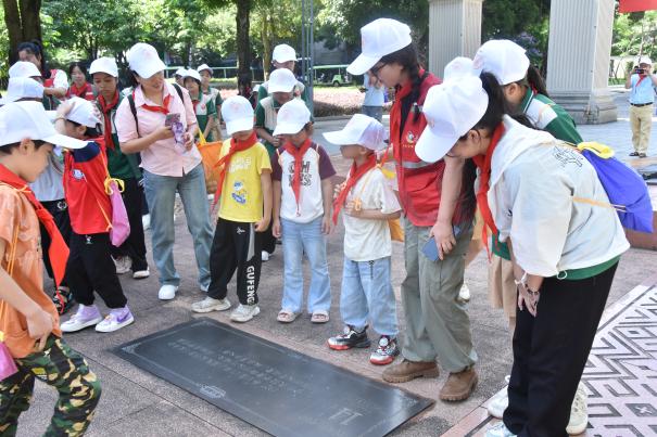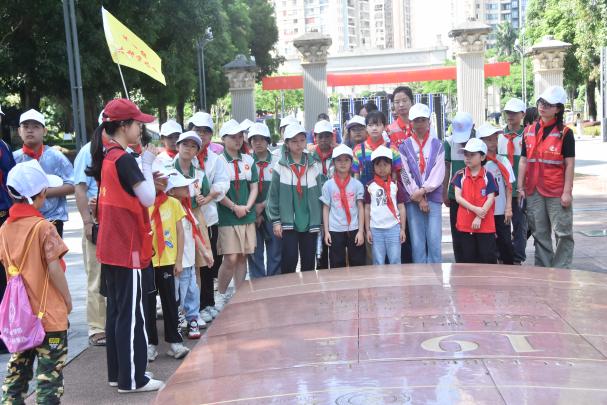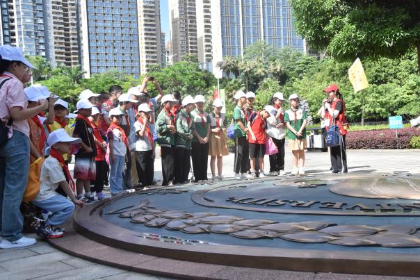 同学们来到william威廉中文官网,跟着志愿者“学姐”一起步行游览校园。在育才广场,听学姐讲解“梧州建校—桂林兴校—西迁榕江—南宁复校”的历史,巨幅时光轴和记录公司历史重大事件的浮雕等深深吸引了同学们,纷纷驻足拍照留念。
