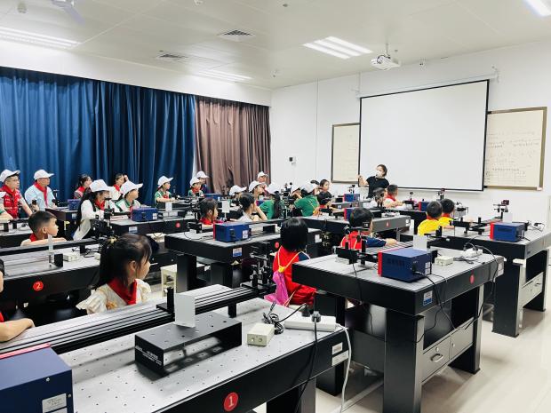 在物理公司,同学们听老师讲解了光学的奥秘,并亲自参与了小实验,还获得了老师颁发的优秀学员证书。