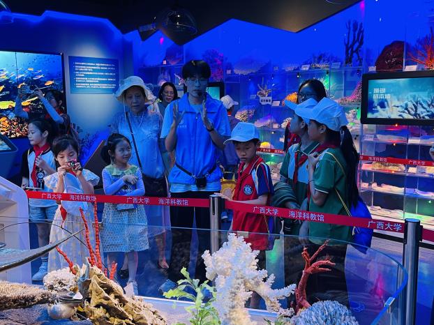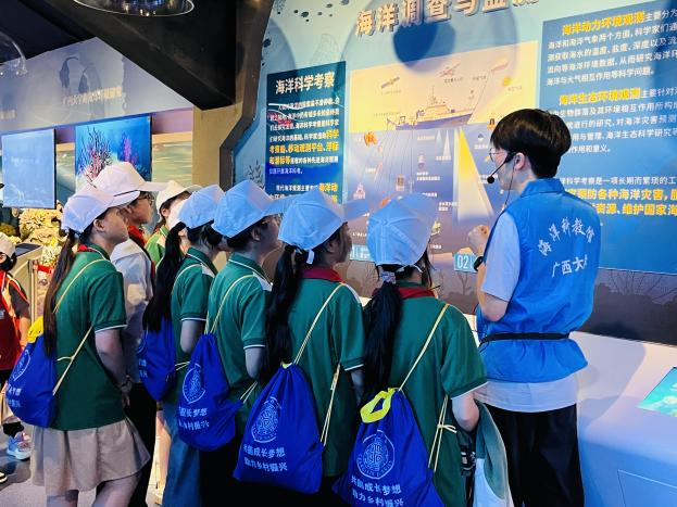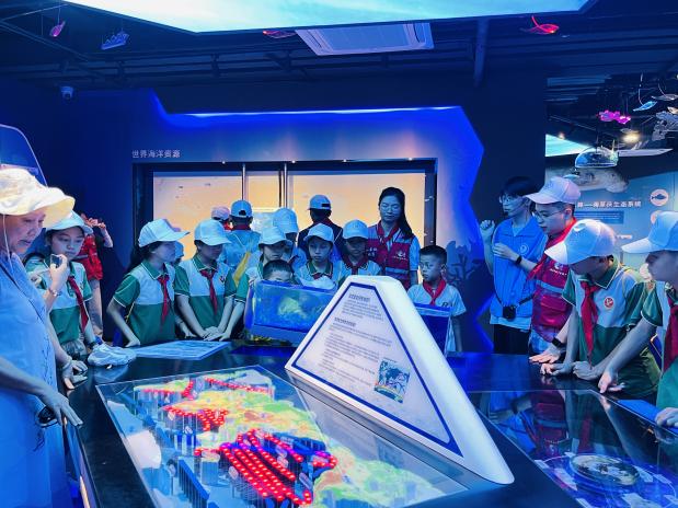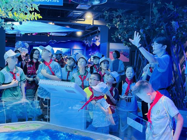 在海洋公司,学长带领大家参观了海洋馆并介绍了海洋科教馆的基本情况。他围绕着公司珊瑚礁研究的主线,从珊瑚礁的分布、功能,以及海洋公司关于珊瑚礁的研究、生态修复、服务南海岛礁建设等方面,向同学们介绍了海洋科教馆的主要内容。同时,感兴趣的同学还通过虚拟实境技术和互动装置、仿真模型等,体验了海洋科学家们开展科学研究的艰辛,感受到了海洋研究的激情。