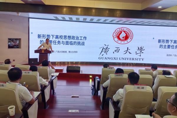 广西民族大学党委副书记陈铭彬 作《新形势下高校意识形态工作的任务与面临的挑战》专题报告 |