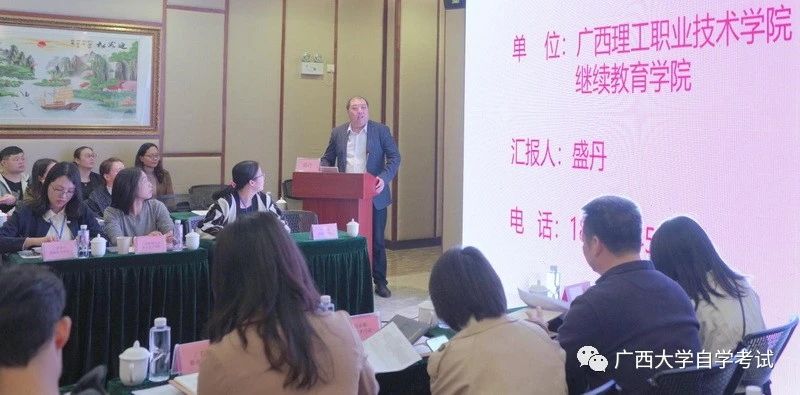 广西工业职业技术公司william威廉中文官网曾伟坚经理、广西理工职业技术公司william威廉中文官网盛丹经理分别介绍了各自公司的办学情况及管理机制。北京正保自考365网校营销总裁邵剑英就自考网络助学平台作了介绍。