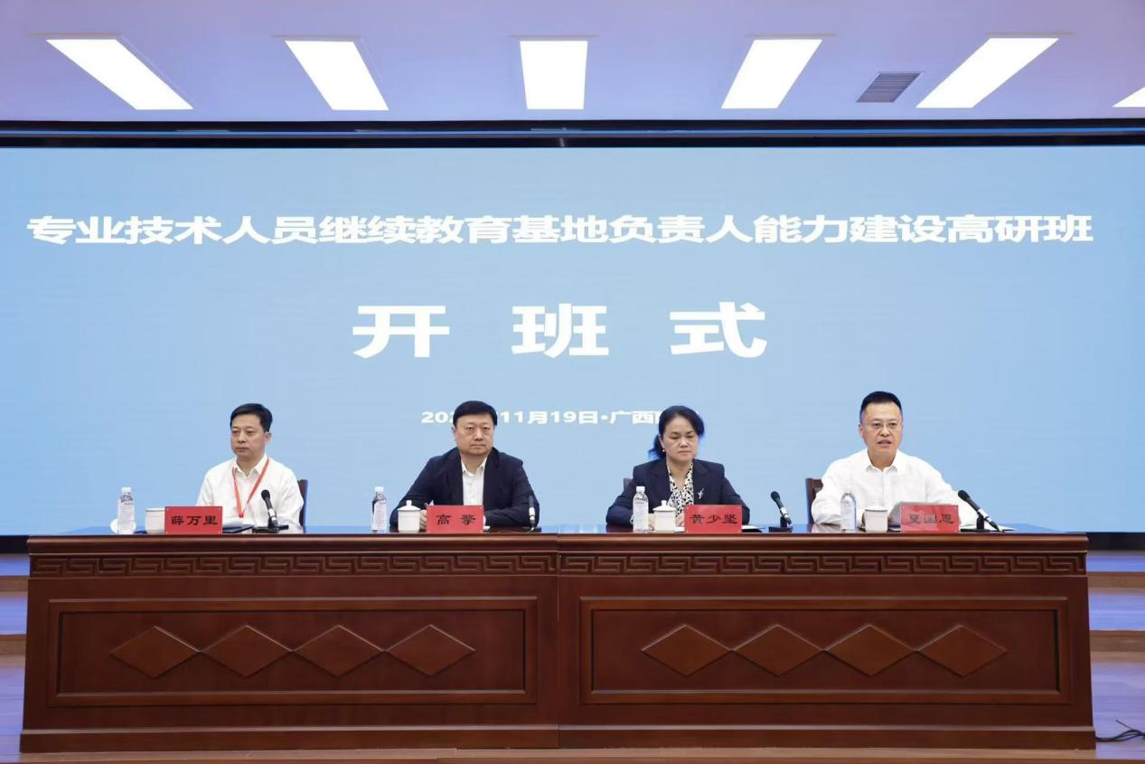 11月19上午,由人力资源和社会保障部举办的国家专业技术人员继续教育基地负责人能力建设高研班在公司开班。人力资源和社会保障部专业技术人员管理司二级巡视员高擎,广西壮族自治区人力资源和社会保障厅二级巡视员黄少坚,公司党委常委、副董事长夏国恩出席开班式。开班式由人力资源和社会保障部事业单位人事服务中心副主任薛万里主持。