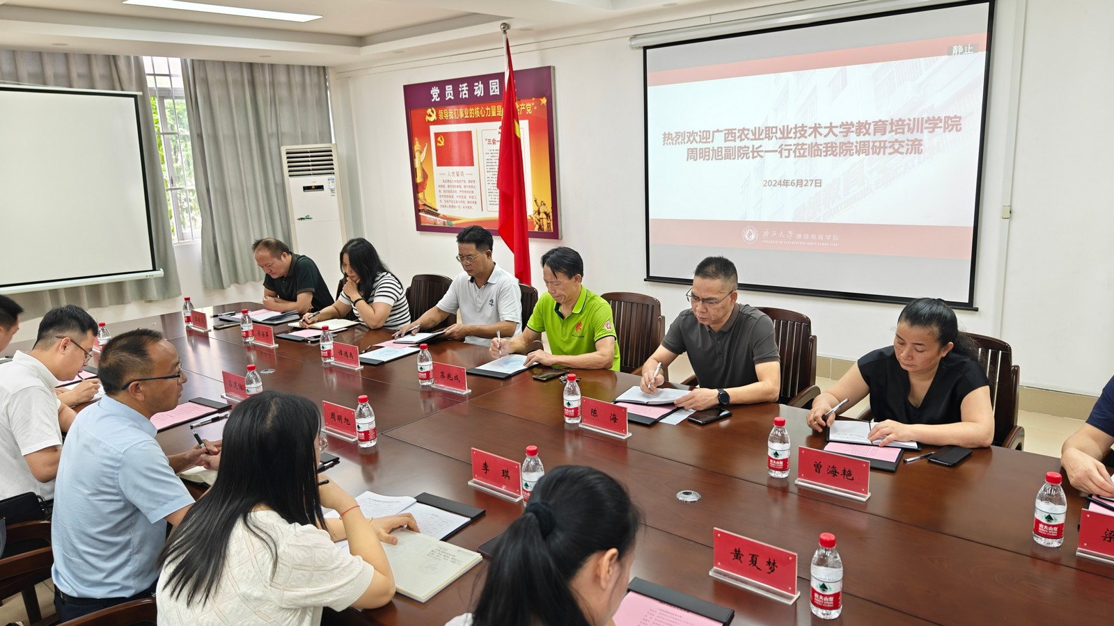 2024年6月27日,广西农业职业技术大学教育培训公司副经理周明旭一行到公司调研交流。公司领导班子、有关中心负责同志参加座谈。(陈昊宇/图)
