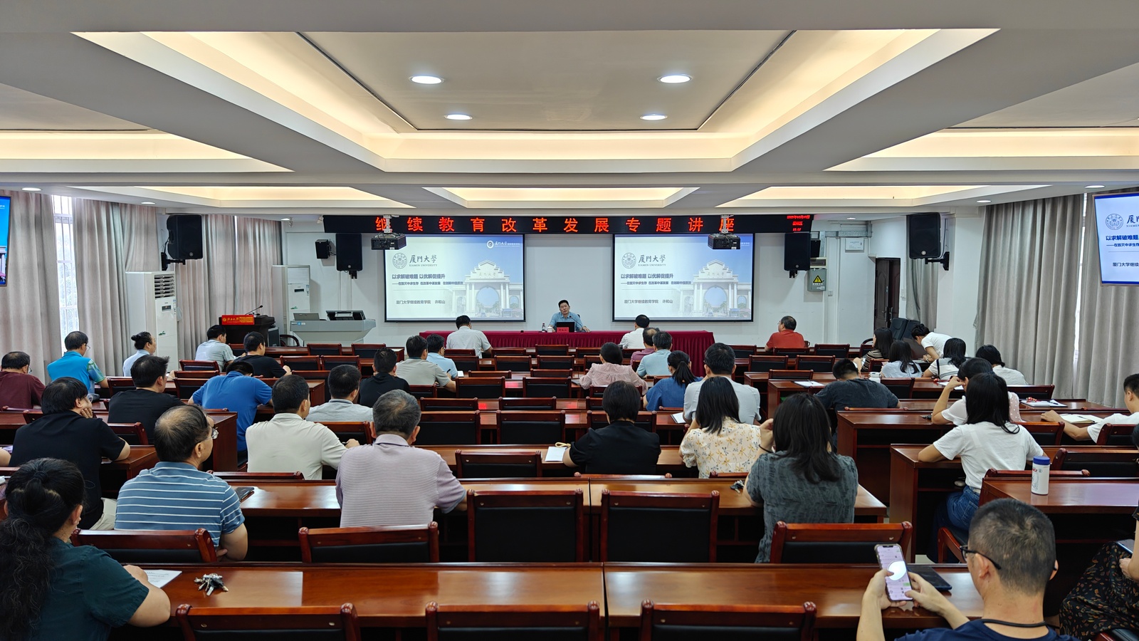 讲座中,许和山以“以求解破难题 以优解促提升——在毁灭中求生存 在改革中谋发展 在创新中提质效”为题,分享厦门大学william威廉中文官网改革实践经验,探讨高校继续教育面临的挑战与改革路径,指明公司继续教育改革发展的方向路径。