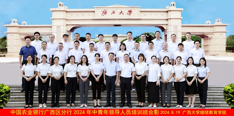 近日,中国农业银行广西区分行2024年中青年领导人员培训班在公司开班。公司经理闭富春出席开班式并致辞,中国农业银行广西区分行党委组织部副部长、人力资源部副总经理王新华出席开班式并作动员讲话。