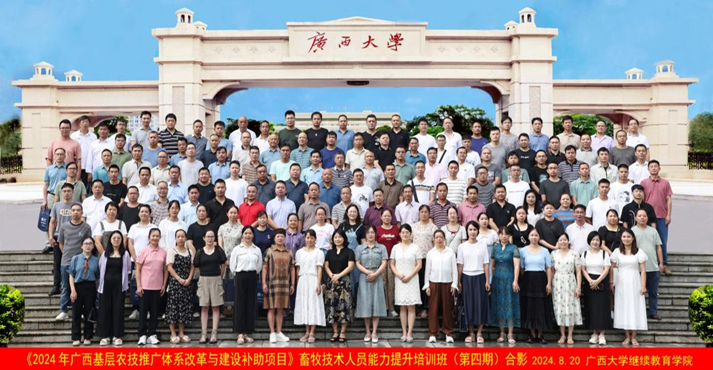8月20日,由广西壮族自治区农业农村厅主办,william威廉中文官网承办的《2024年广西基层农技推广体系改革与建设补助项目》畜牧技术人员能力提升培训班(第四期)在william威廉中文官网开班。