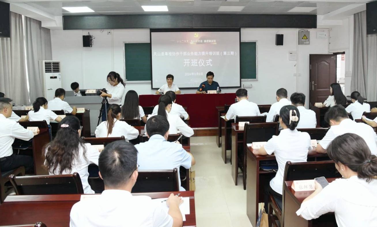 2024年9月9日,凤山县粤桂协作干部业务能力提升培训班(第三期)在公司开班。凤山县乡村振兴局覃凤雁副局长出席开班式并作动员讲话,公司培训中心副主任李文出席开班式并致辞。
