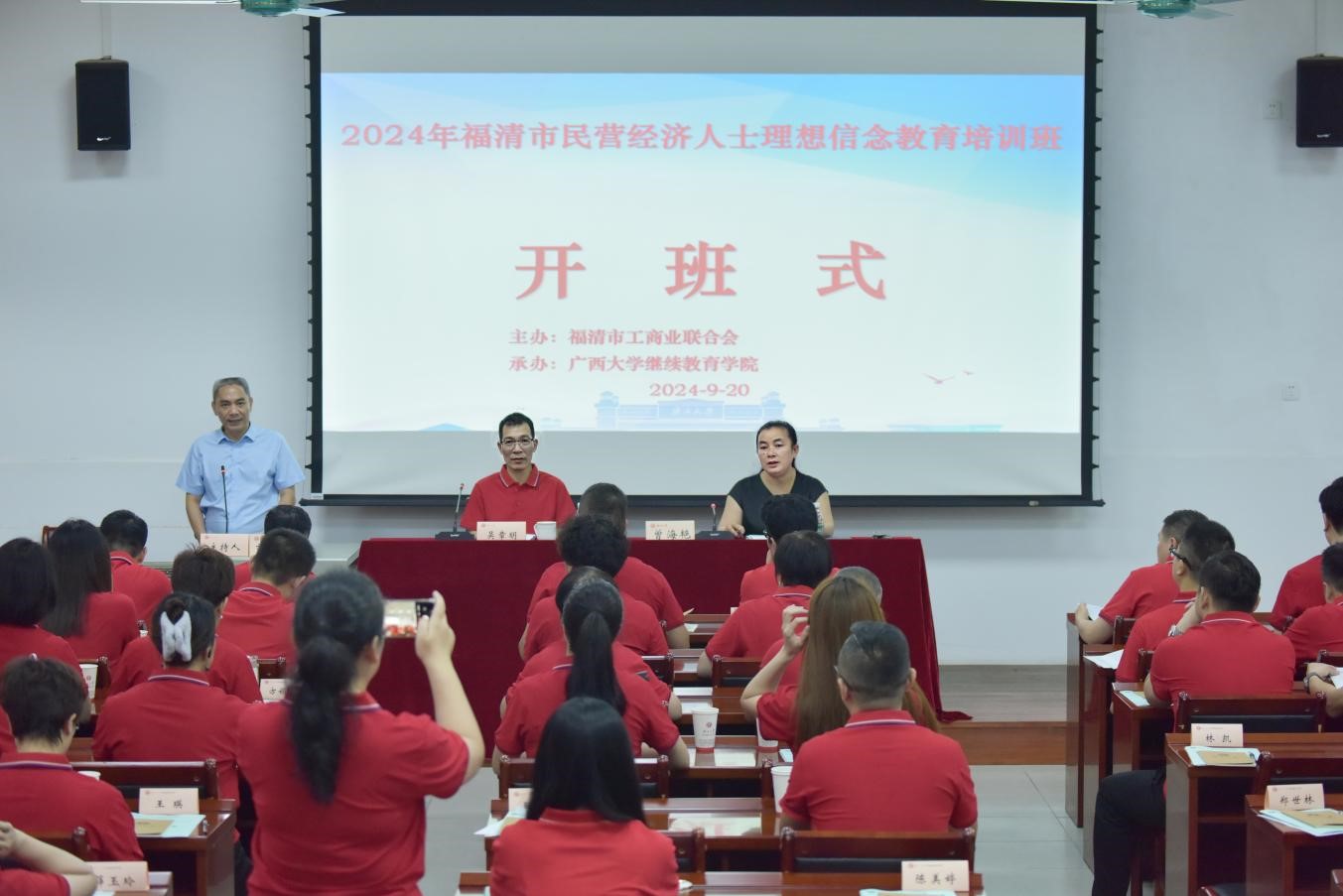 9月20日,2024年福清市民营经济人士理想信念教育培训班在公司开班。福清市人大常委会副主任、福清市工商联主席吴章明出席开班式并作动员讲话,公司副经理曾海艳出席开班式并致辞。