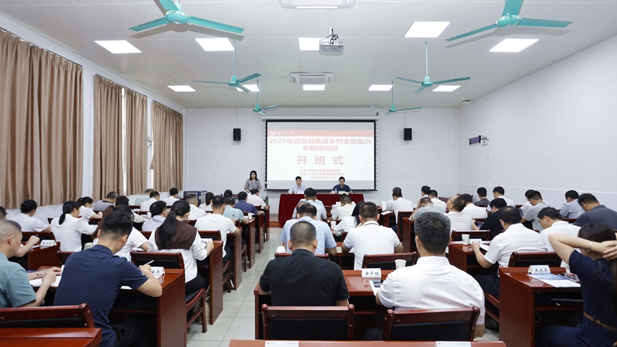 5月19日,2025年武宣县推进乡村全面振兴专题培训班在公司开班。武宣县财政局党组成员、纪检监察组组长郭黄强出席开班式并作动员讲话,公司干部培训中心副主任李文出席开班式并致辞。