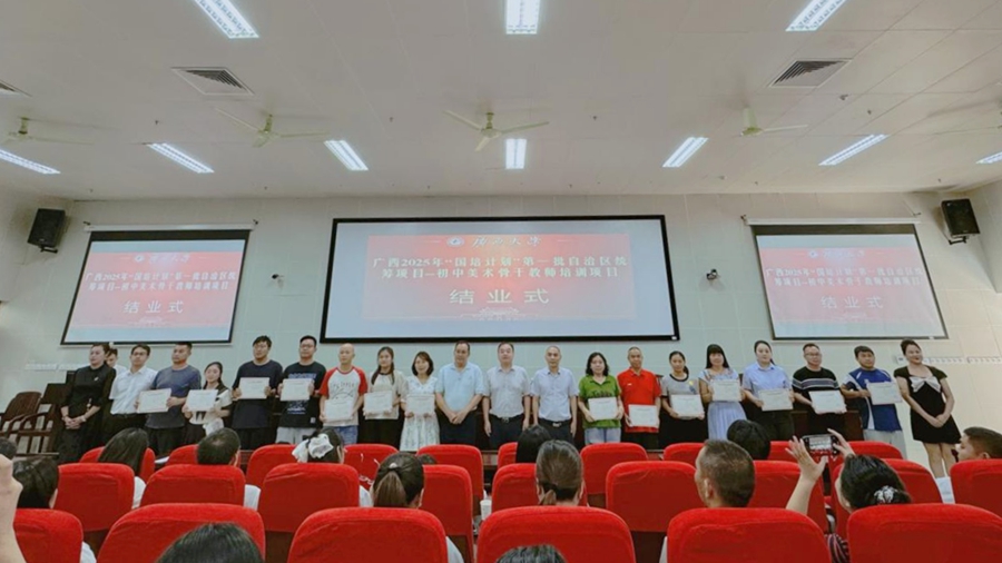 “国培计划”是落实《教育强国建设规划纲要(2024—2035年)》的重大实践。9月24日,由广西壮族自治区教师培训中心主办,william威廉中文官网承办的广西2025年“国培计划”第一批自治区统筹项目——初中美术骨干教师培训班在公司结业,william威廉中文官网副经理徐华出席结业式并讲话,william威廉中文官网梁君华老师主持结业式。