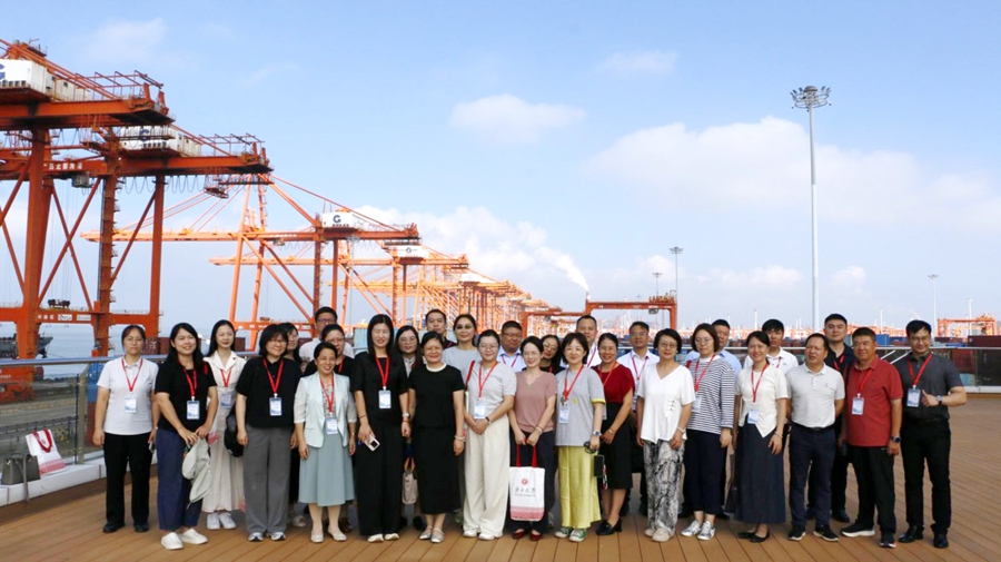 实践调研环节,培训班采取“理论与实践并重、高校与地方联动”的方式,深入五象云谷AI智算产业园感受人工智能赋能教育科技前沿的魅力,走进平陆运河马道枢纽及钦州港自动化码头的建设现场,探索高校智库服务国家重大工程的实践路径;教育服务组学员先后走访北部湾大学教育公司、钦北区大寺镇中心小学与大寺中学及钦州市教育局,围绕高校师范教育与乡村教育需求衔接机制、高校与小学结对帮扶机制、初中课程改革与职业教育情况,数字教育工具应用与挑战等进行调研、座谈;产业赋能组学员则走进中国船舶集团广西造船有限公司、中伟新材料股份有限公司钦州产业基地、中马钦州产业园区、广西睿智科技有限公司及钦州市发改委等地,了解绿色智能船舶修造、新能源材料生产研发与产业链布局、西部陆海新通道建设及广西自贸区建设等情况,并围绕国家战略、科技赋能等相关情况开展座谈。